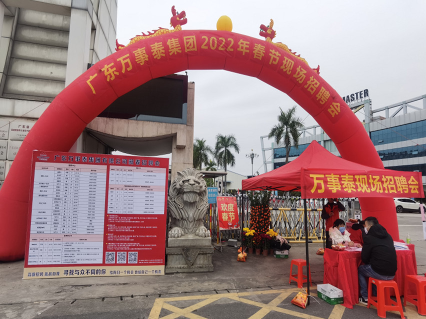为缓解企业“招工难”、劳动者“就业难”的“两难”问题,2月5日上午,广东万事泰集团在集团总部举行2022年春节招聘,提供技术研发类、管理类、一线普工就业岗位近300个。