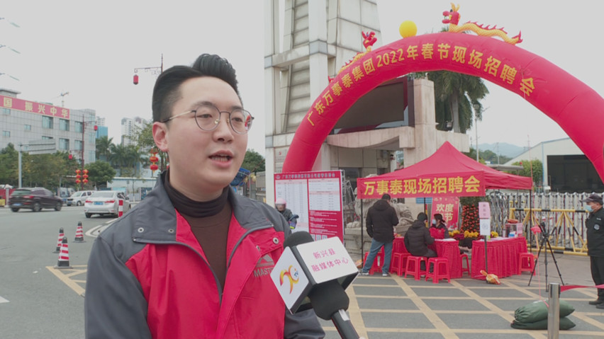 区冠文 广东万事泰集团人力资源部主管:应聘者可到招聘摊位进行咨询,寻找合适的岗位,在工作人员的指导下填写完整应聘履历表后,由用人部门带领应聘者先观察工作的环境以及工作内容,得到应聘者的认可后,再进行相关的面试流程,面试通过后只需要准备入职资料即可马上办理入职手续。我们想借助本次招聘,告诉外出工作的同乡们,远在他乡漂泊不如留在当地发展,广东万事泰集团海量高薪职位等着各位同乡们的到来。